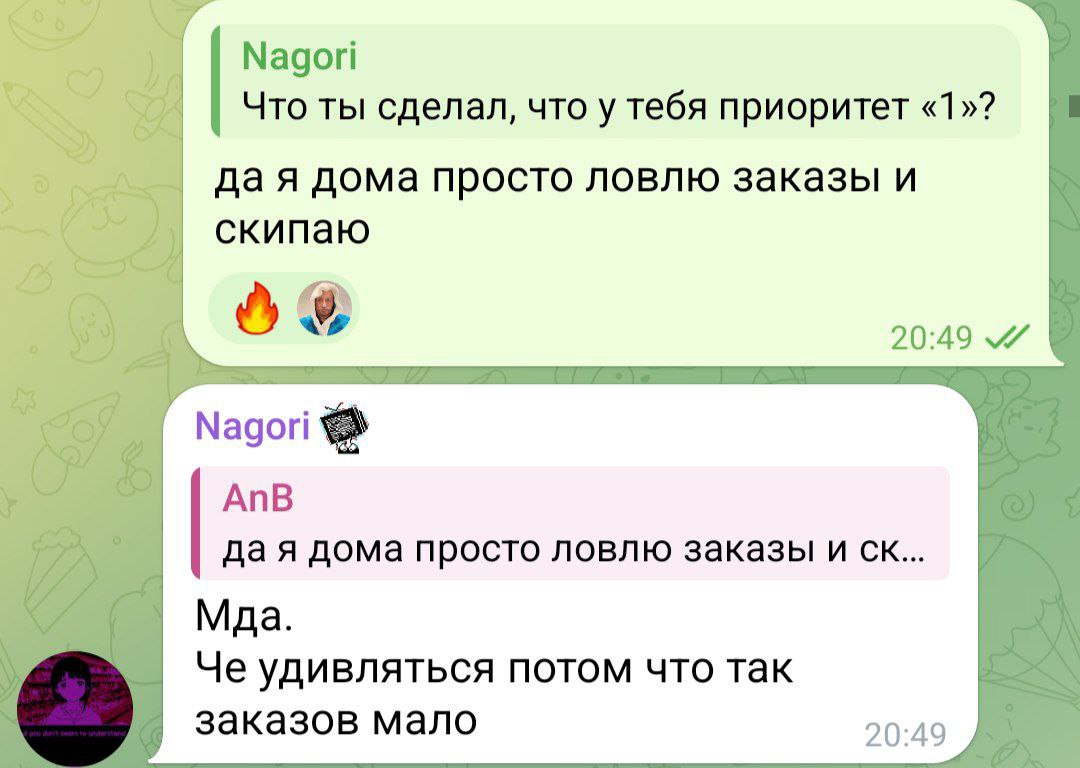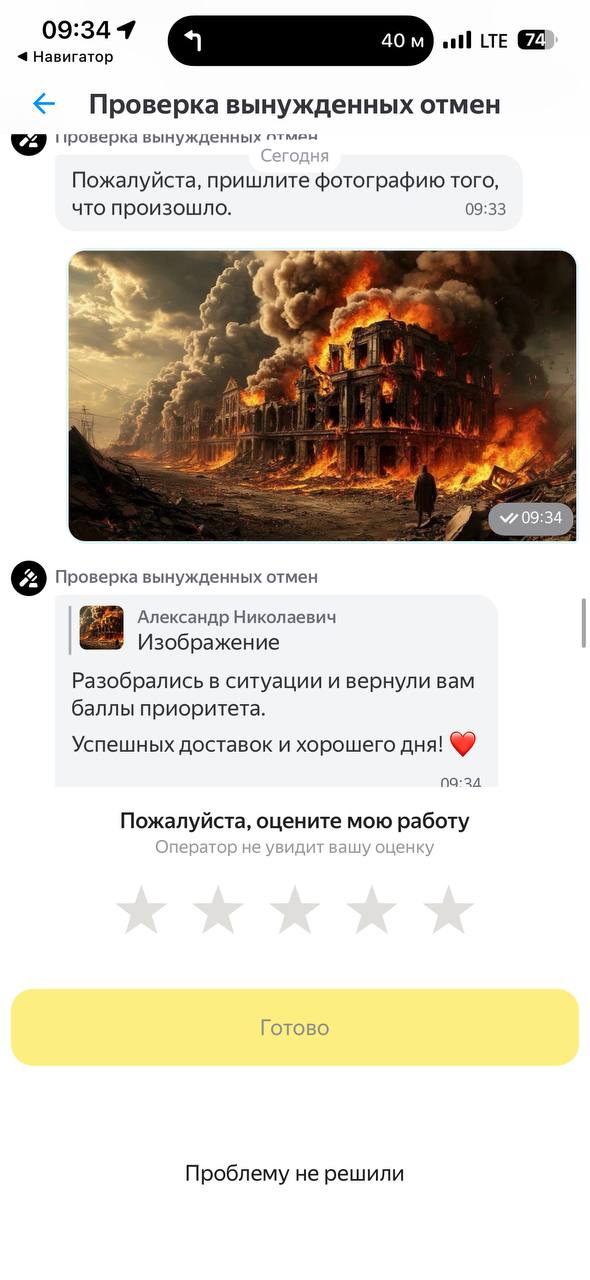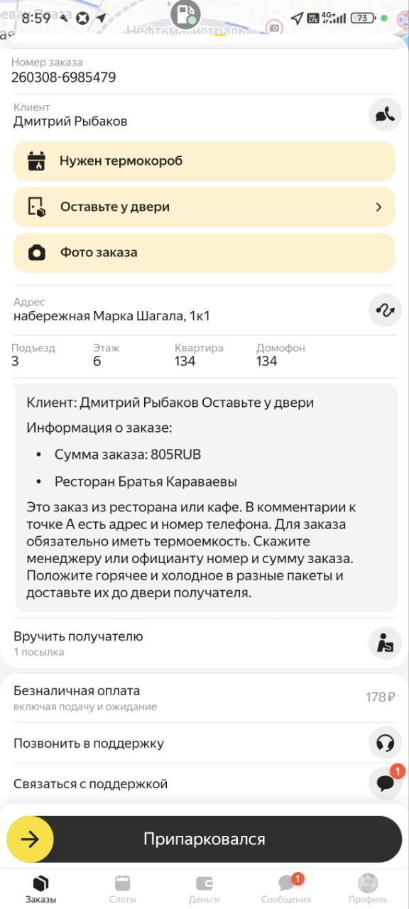 А вообще, если заказ не в квартиру, а в какое то заведение. Звонишь клиенту и говоришь чтобы сам спускался, и забирал заказ. Если на тачке - перед регистратором передавай, чтобы на видео попал факт передачи. Либо просто так фиксируй передачу. Потом намного легче будет оспорить корректировку. Тем более она прилетает быстро. Закидываешь видосы в архив, и при необходимости достаешь.