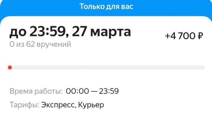 Март не просто тухлый, это полнейший кошмар! У меня сегодня за 12 часов - 2,5 (!) Я не добила цель - 4 заказа! Их просто не было! Очень мало за все 4 дня! Простой каждый день по 30-40 минут в ожидании, когда выпадет заказ, хоть какой-нибудь!