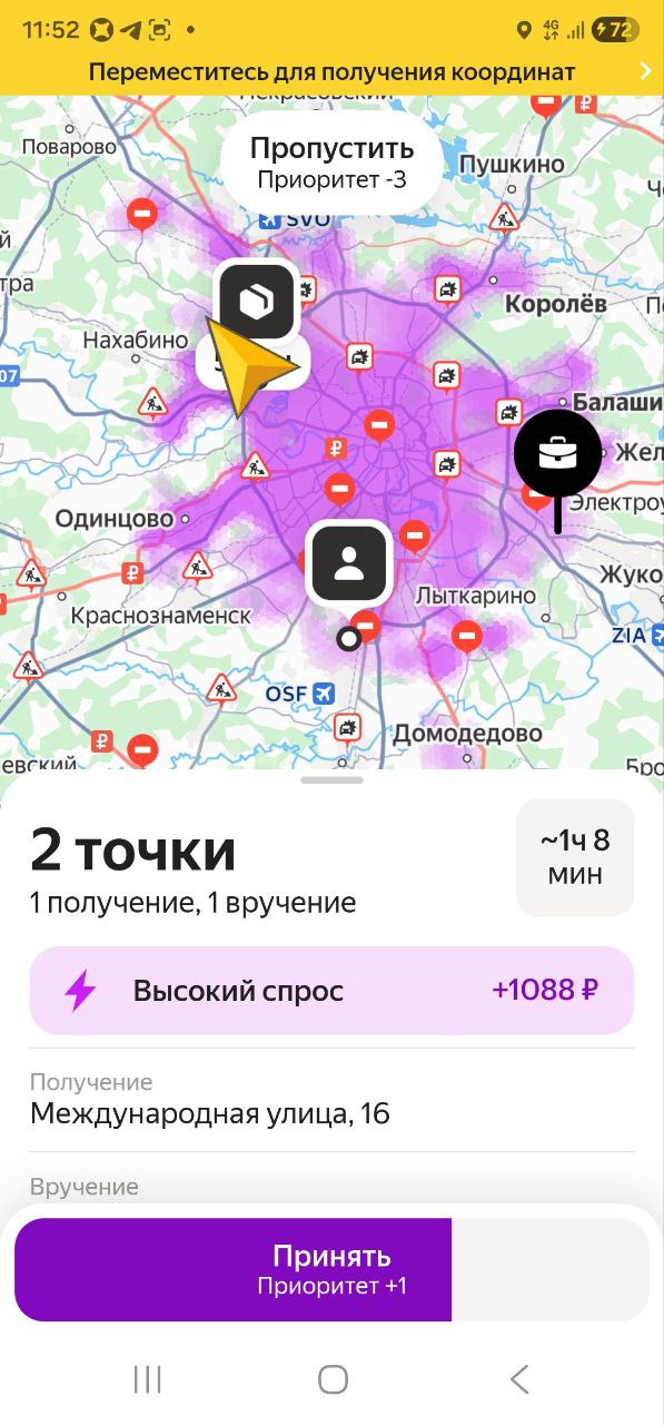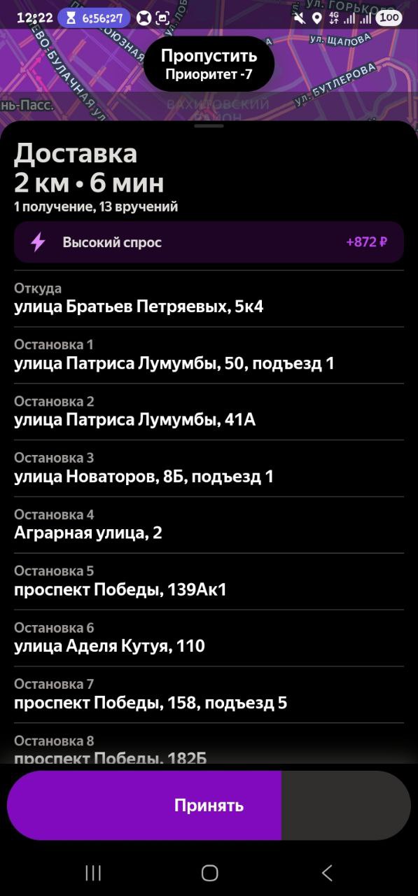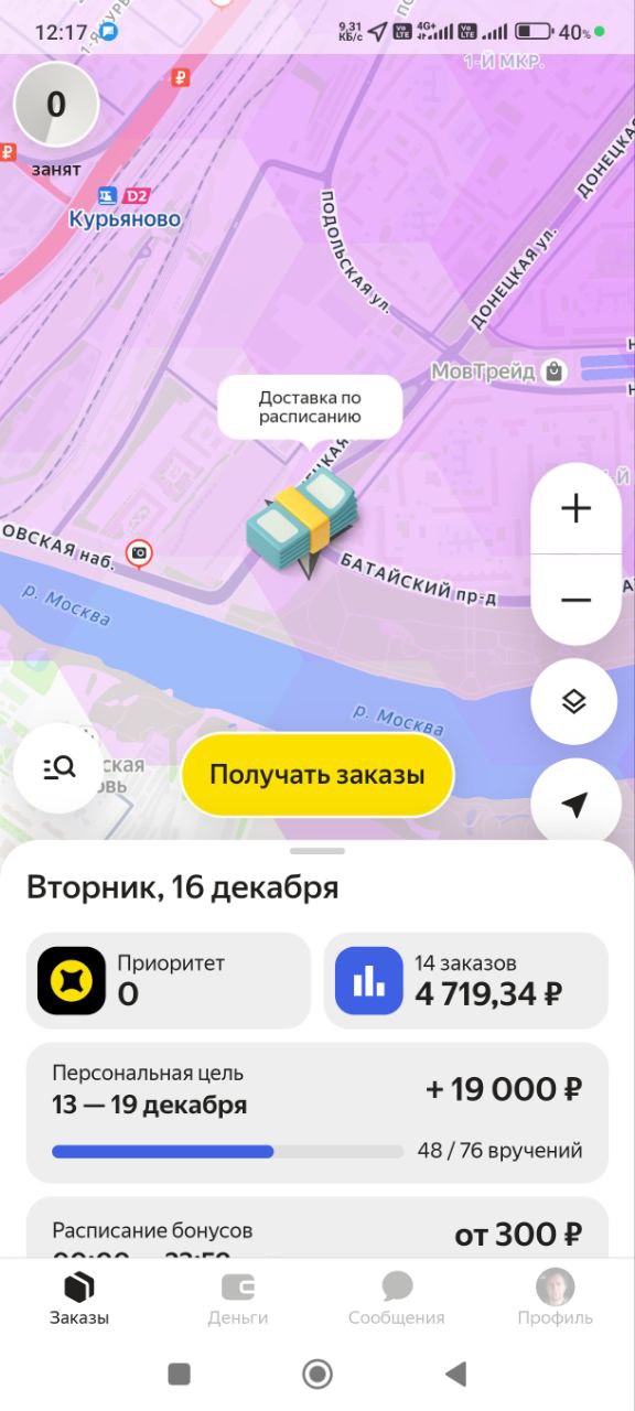 Кирилл, привет. Тоже самое могу сказать про бутово. Я ночами, ну, нормальный кэш там срезала. То есть 500, 700 у меня был стабильно с того же кфс, а сейчас все, может, кто-то прочухал, больше не буду писать про такие места, если найду. Много курьеров бутово стало.