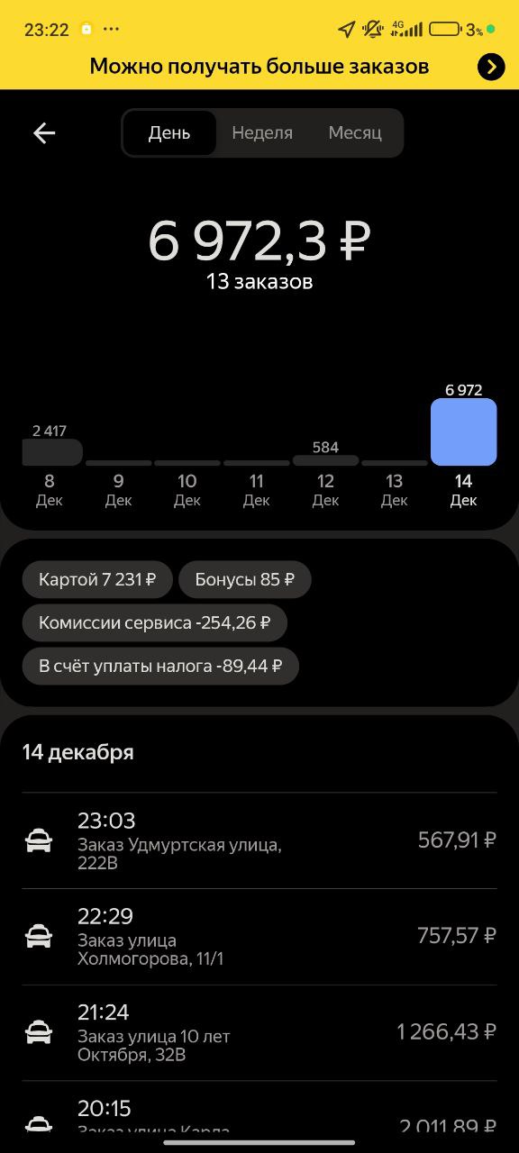 Да, сейчас с заказами действительно все как как попало. Я вот тоже думал, что к началу декабря более менее все нормализуется. То есть персональных целей сейчас стало гораздо меньше. Думал, кэф будет более менее гореть, а он, если вспыхивает, так тухнет быстро, и то, бывает, стоишь вроде коэффициент там. Условно, там 300, 350, ты стоишь, минут 10, заказ не падает. Если падает, то по зелени. Пока там это все отменяешь уже и кэф потух. Ну, конечно, сейчас и народу тоже очень много стало. То есть с каждого утюга у нас тут транслируют то, что вот курьеры много получают, там больше 100000, все дела. Вот и понабежали все, кому не лень, там и пенсионеры, и студенты, и девушки. Вообще. Вот реально все, все ёбаные бездельники. Вот поэтому стоим. По полчаса и заказ ждём. И дай Бог, он будет ещё не по зелени. Ну, понятно, что зелень тоже разная бывает. То есть бывают вообще короткие заказы. Где условно ты там стоял, прилетел заказ, ты из соседнего дома забрал, в соседний дом отдал, и за, грубо говоря, там 4, 5 минут минималку свою получил, там рублей 100. Ну, как бы, вот это условно хороший заказ, потому что, ну, 5 минут 100 ₽ нормально, но потом то ты опять стоишь и ждёшь там по полчаса. То есть, вообще как попало. Я не знаю, что будет к новому году. Вполне возможно, ещё больше людей выйдет. Ну, и спрос будет, конечно, побольше, но, тем не менее, так что Ну, будем надеяться на лучшее.