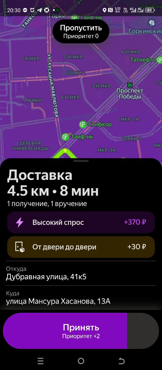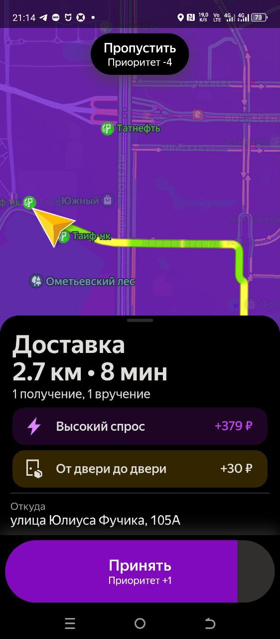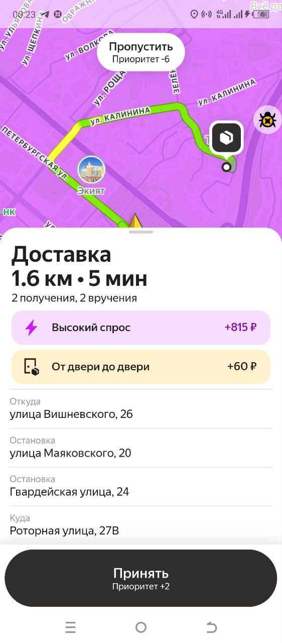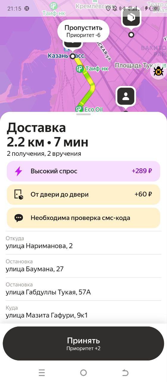 Блин, у меня сегодня прямо идеальные клиенты. Сейчас до этого у меня клиент вышел, забрал за 500 метров до его дома. Сейчас клиент вышел, отдал заказ тоже где-то 200 метров от дома, прям дороги вынес, чтоб я не заезжал во двор. Прям уважуха таким людям. Ну, мужики понимают, тот, кто за рулём понимает. Вот они сами выносят, бля, потому что говорят, ты там заебешься, не заезжай, бля, уважуха, таким.