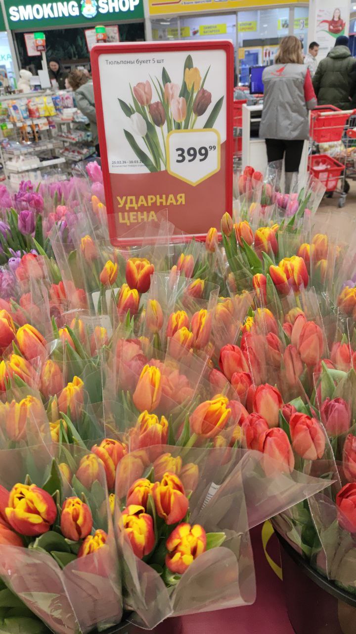 В Ленте только что был, там этих тюльпанов море