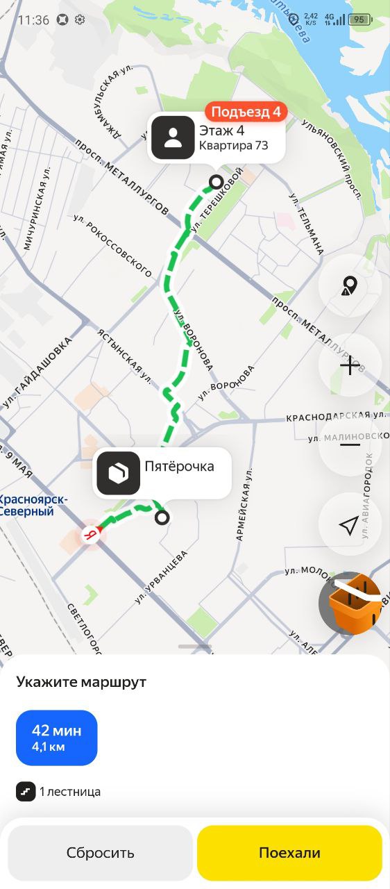 Термокороб для доставок и фирменную куртку Яндекс-Еда курьеры Красноярска могут получить перед выходом на свой первый слот в курьерских пунктах по адресам: