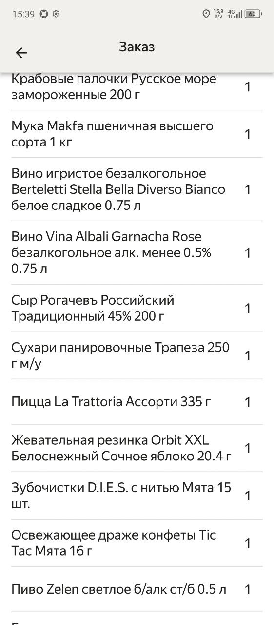 Мне как-то дали мульти заказ. Продукты три пакета и две пиццы.
