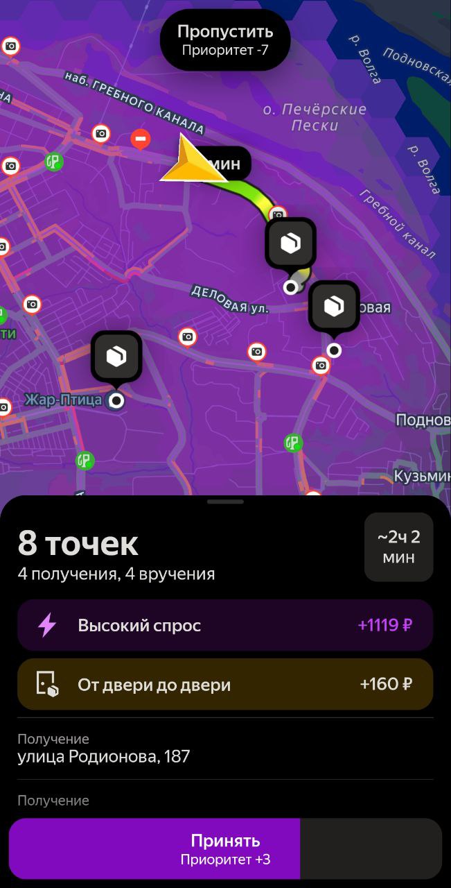 Да в еде там жопа , кидает заказы с дальней подачей часто , 10 заказов отменяешь включается автоприем заказов на следующие 100 , и возишь вообще все подряд хочешь ты этого или нет , чтобы отменить заказ это куча геморроя меня заставили предоставить справку о ремонте авто потому что я сказал что машина сломалась не могу забрать заказ , попросили кучу фото , и потом кинули корректировку что не забрал заказ