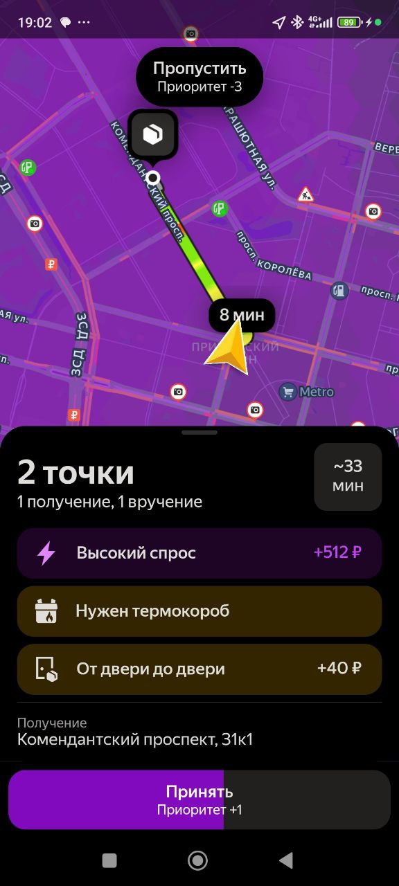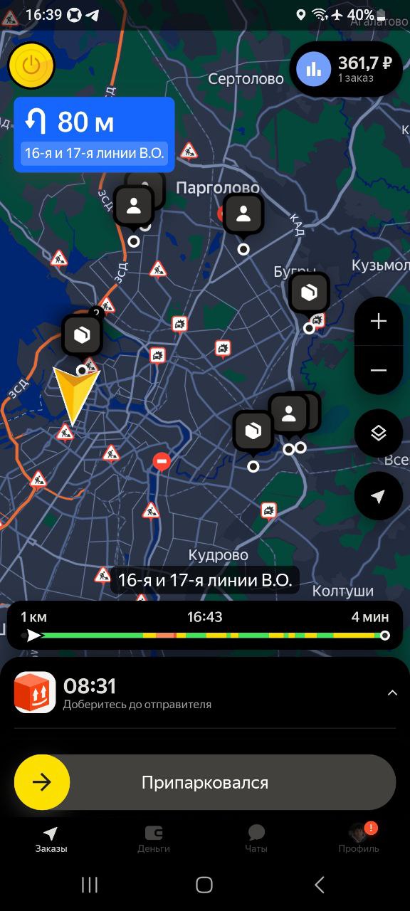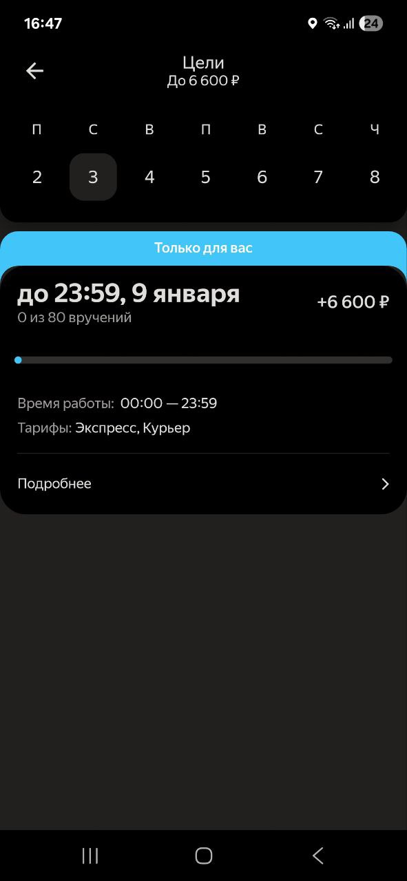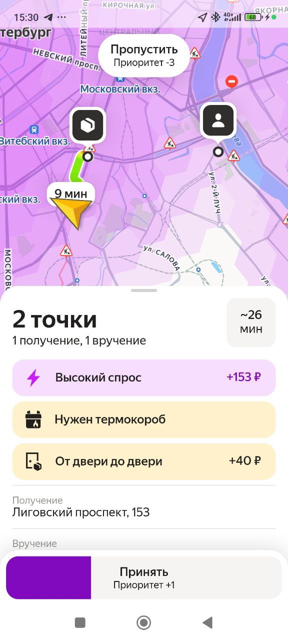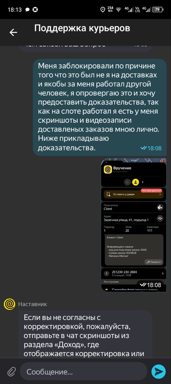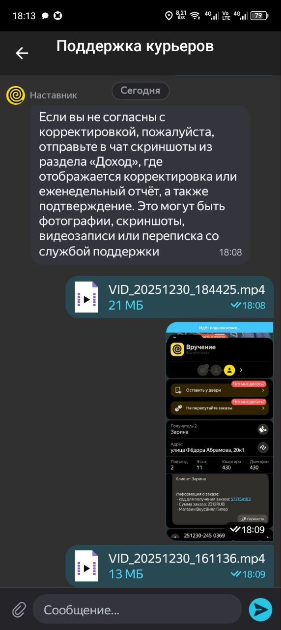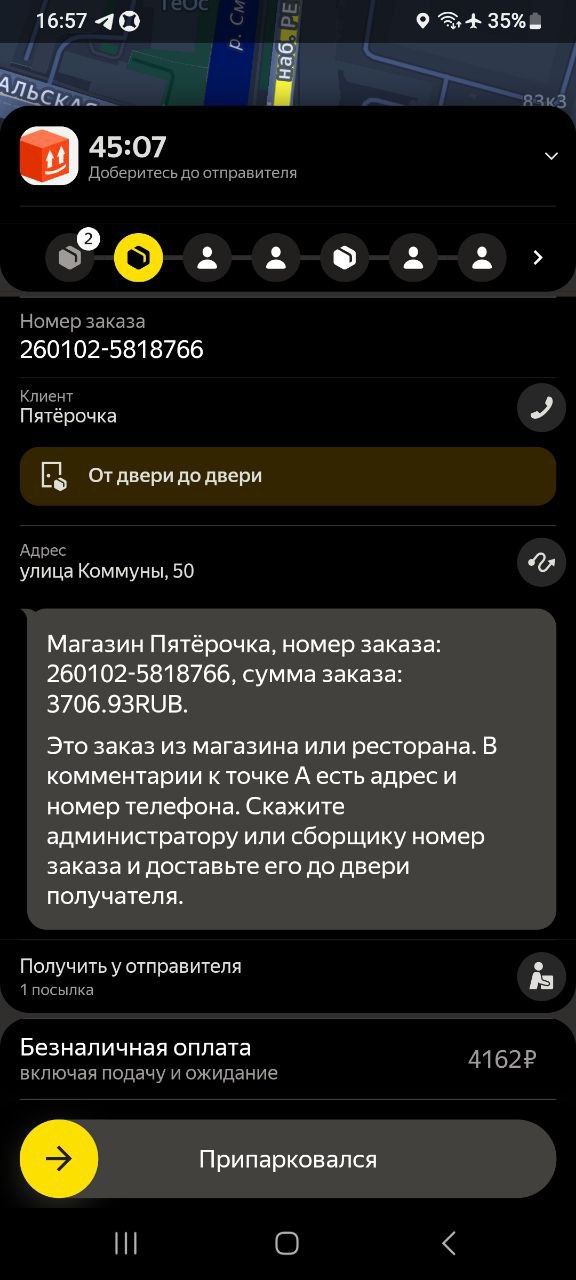 У меня на днях доставка была с летуаля, там был парфюм за 9 кэсов, и нужно было довезти до кра, до квартиры звоню, значит, никто не отвечает. Звоню по телефону получателю. Я говорю, вы дома, он такой, нет, я в соседнем магазине, оставьте на двери. Я говорю, нет, у меня, как бы, во первых, подтверждение кодом, во вторых, передача из рук в руки. Я говорю, вы в каком магазине? Да, тут недалеко в ленте, а там ехать. Ну, это на дальнике было, там буквально 5 минут. Я говорю, я сейчас приеду, отдам вам лично в руки, пишу в поддержку. Так-то так, то дома нету, значит, адрес другой, но написала, чтобы просто обозначиться, чтоб потом ко мне не было претензий, что я не там отдала. Нарушен маршрут, вот эта вот вся эпопея по геолокации. В итоге встречаемся с чуваком, я ему отдаю, завершаю заказ. Проходит 15 минут. Поддержка отвечает, мы начислили вам деньги и присылает ещё 250 ₽ сверху было приятно, но по факту как бы Челик попросил оставить, и я не стала оставлять, потому что если бы его кто-то стырил, а его, скорее всего, кто-то бы стырил, потому что это дорогая хрень с пакетом летуаль, ну как бы проблемы были бы у меня. Поэтому, ребят, берегите себя и будьте очень аккуратны и бережны к себе в 1 очередь.
